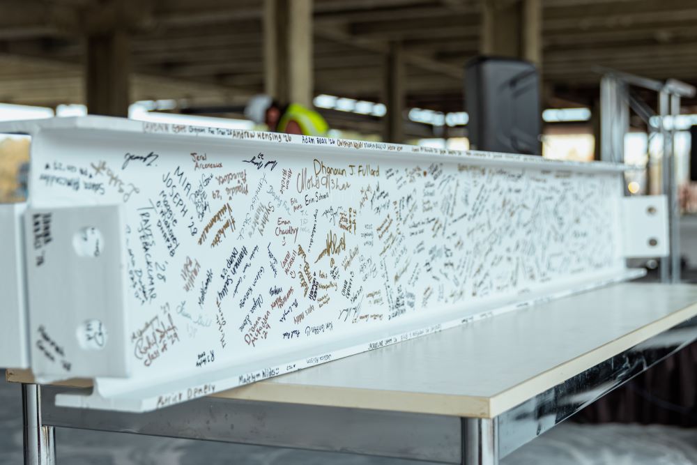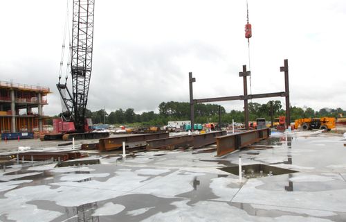 Structural steel at the University of South Carolina’s new Health Sciences Campus is progressing nicely! This image shows one of the larger and heavier (39,000 pounds) beams on the project being set in place on August 21, 2025, spanning what will become the terraced classroom on the ground floor of the medical education wing of the building. Stay tuned for further updates as work continue to progress!”